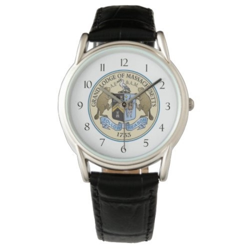 The Men's Classic Leather Watch is a timeless accessory that is always in style. Featuring a three-hand quartz movement and genuine leather strap, this watch’s classic look is great for all occasions. The face is customized with the Grand Lodge of Massachusetts seal.